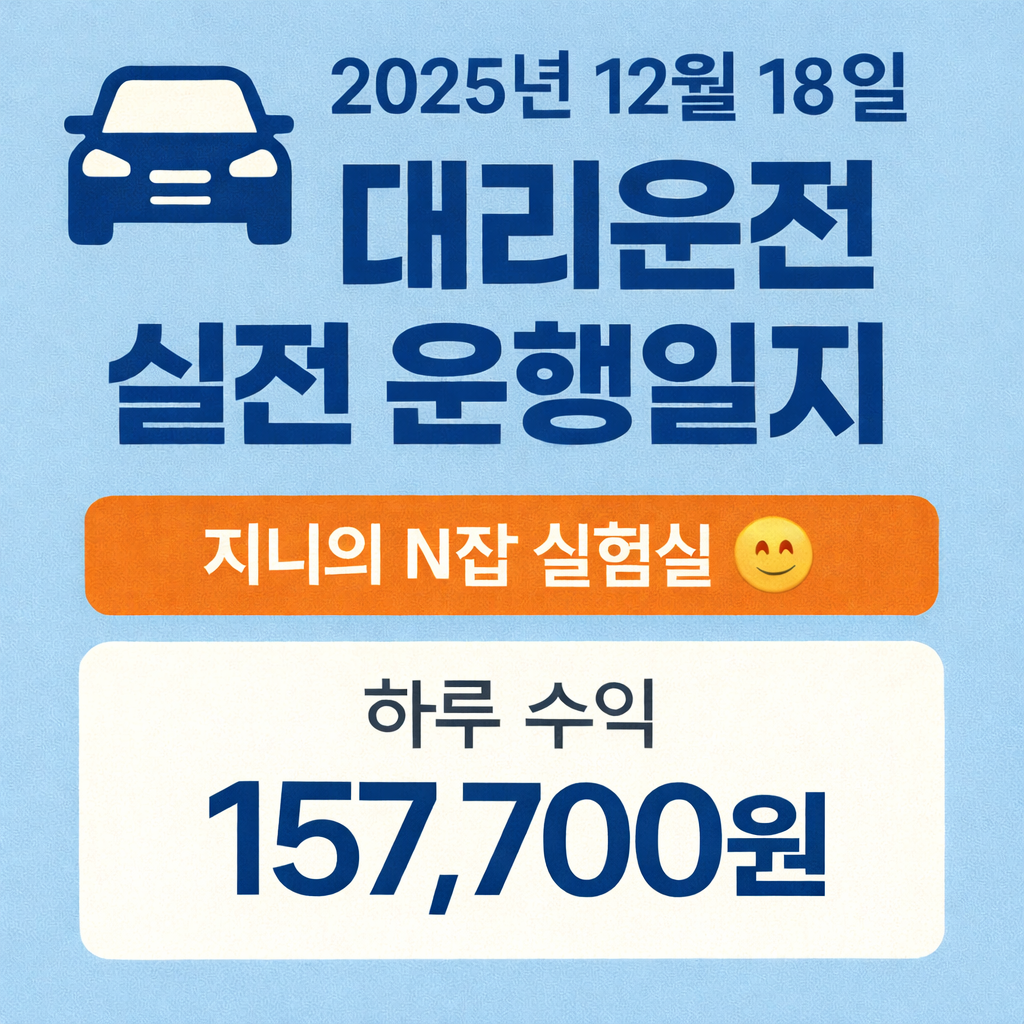 🚗 2025년 12월 18일 대리운전 실전 운행일지 지니의 N잡 실험실 😊 📘 이 글은 ‘지니의 대리운전 리얼 수익 시리즈’ 연재