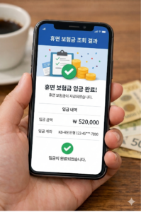 휴면 보험금 조회 후 통장으로 입금받는 스마트폰 화면