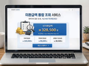 스마트초이스 홈페이지에 접속하여 [미환급액 조회] 메뉴를 누릅니다.